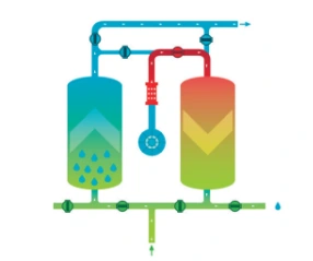 건조제 매체는 건조되거나 재생되기 전에 수분을 흡수할 수 있는 제한된 용량을 가지고 있습니다. 이를 위해 포화된 건조제를 포함하는 타워의 압력이 낮아지고 축적된 물이 제거됩니다.