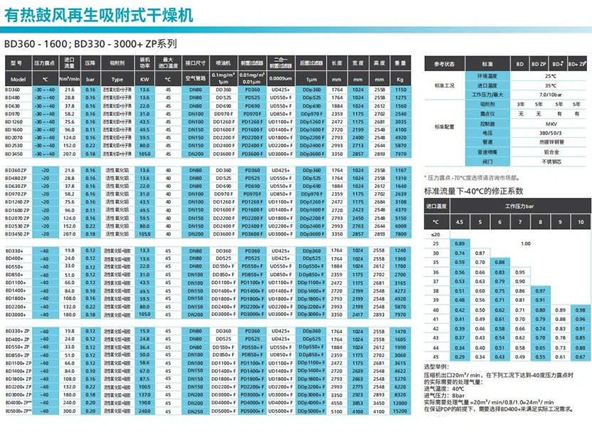 ■ 송풍기 제로 공기 소비 흡착식 건조기는 중대형 공기 응용 분야에 특히 적합합니다.