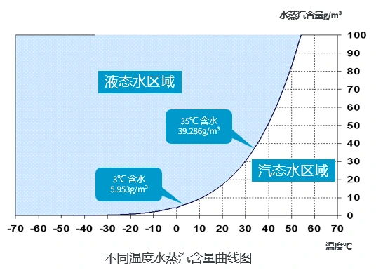 그림은 공기가 서로 다른 온도에서 서로 다른 양의 수증기를 보유하고 있음을 보여줍니다. 공기가 냉각되고 수증기 수준도 낮아집니다. 곡선에는 포화 수증기 수준을 표시하는 점이 있습니다. 이들 각 지점의 온도가 이슬점입니다. 이슬점이 낮다는 것은 압축 공기에 수증기가 적다는 것을 의미합니다. 냉동식 공기 건조기는 이러한 물리적 규칙을 사용합니다. 압축 공기가 냉매와 열을 교환하도록 합니다. 이 동작은 압축 공기의 온도를 낮춥니다. 냉각된 공기의 수증기는 액체 물로 변합니다. 이 액체는 시스템 밖으로 배출됩니다. 예를 들어, 35℃에서 압축 공기의 포화 수증기 함량은 39.286g/m3입니다. 냉매와 열교환하고 3℃로 냉각한 후 포화 수증기 함량은 5.953g/m3입니다. 33.333g/m3의 차이는 동결건조기로 냉각 및 탈수한 후 제거된 수분의 양을 나타냅니다. 즉, 압축 공기가 동결 건조기를 통과한 후 약 85%의 수분이 제거되어 압축 공기의 건조가 생산 공정 요구 사항을 충족합니다.
