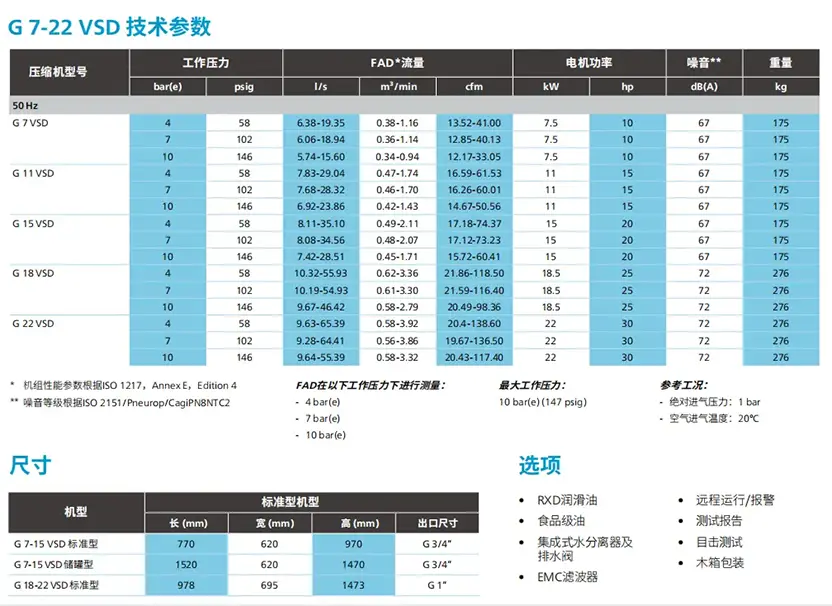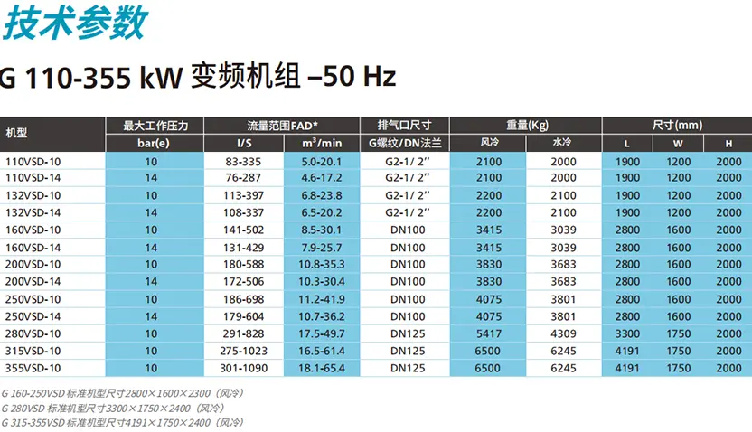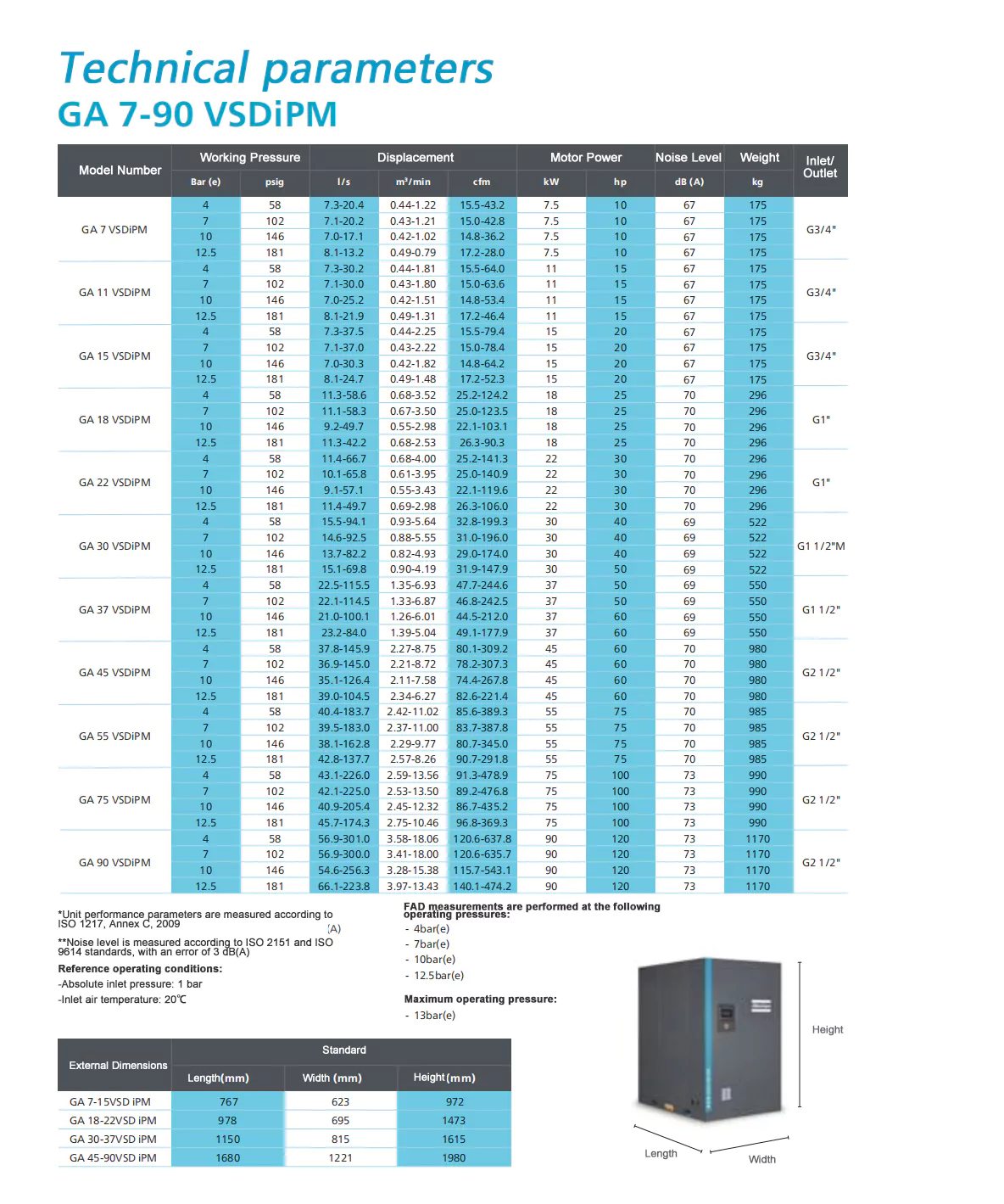 Atlas의 VSD 가변 주파수 공기 압축기는 연속 작동을 위해 특별히 설계되었습니다. 구동 시스템은 효율적인 영구 자석 모터를 채택하여 탁월한 오일 냉각 효과를 얻을 수 있습니다. VSD 기술은 최대 35%의 에너지 절약을 달성할 수 있으며 더 작은 설치 공간은 설치 유연성을 보장합니다.