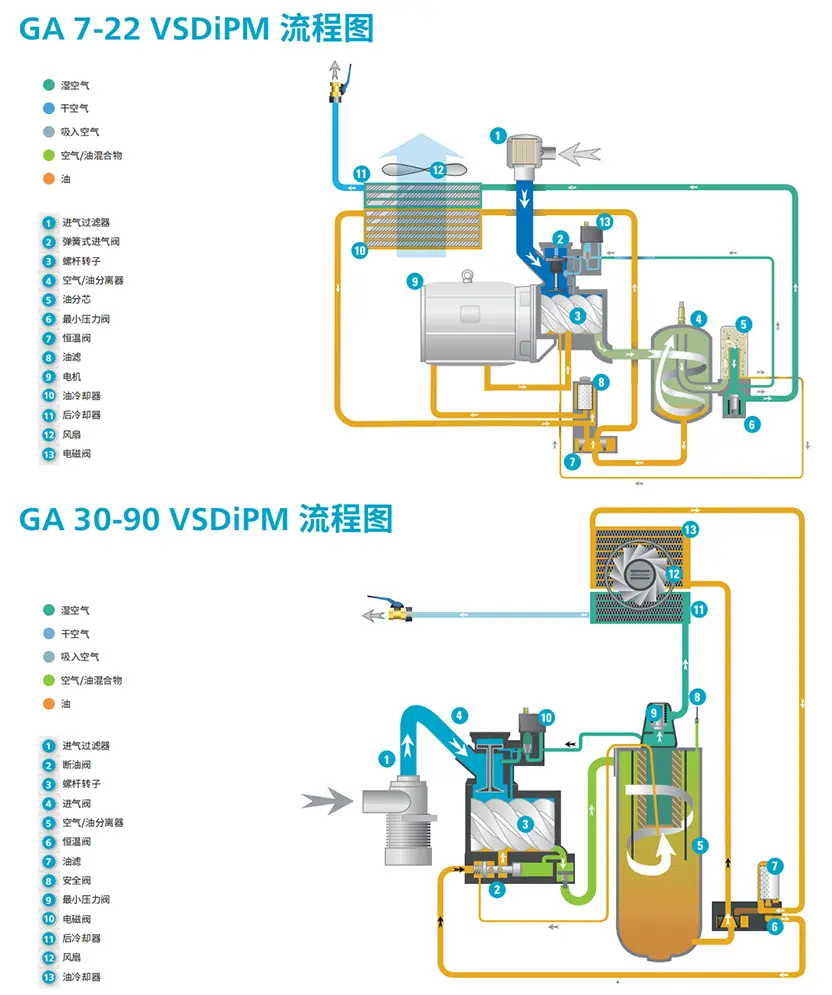 VSD 가변 주파수 공기 압축기는 기존의 로딩/언로딩 기계에 비해 최대 35%*의 에너지를 절약할 수 있습니다. 또한 GVSD의 오일 냉각식 영구 자석 모터는 언로드 없이 전체 시스템 압력 하에서 시동 및 정지할 수 있습니다. 또한 시동 중 피크 전류 영향을 제거합니다.